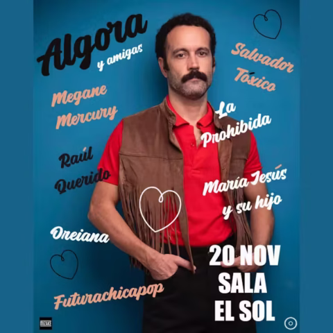 Empezaré diciendo que este es mi primer concierto de Algora, pero estaría mintiendo. Ya lo había visto en su momento en las Fiestas del Orgullo en la plaza de la Luna en Madrid, pero en aquella época todavía era un desconocido para mí. Así que puedo decir que esta ha sido la primera vez que he ido a verle a sabiendas de quién era y con muchísimas ganas. Lejos queda esa primera experiencia en la que se subió solo al escenario delante de una plaza abarrotada armado con una guitarra y su voz. ¡Pero qué voz! Y aquí estoy, años después, nerviosa como una colegiala en este concierto homenaje con amigos. ¡Y lo he disfrutado tanto!